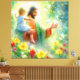 This canvas print picture depicts Jesus tenderly carrying a child, capturing a moment of compassion and love. The artwork beautifully illustrates the bond between them, emphasizing themes of care and protection. It's a touching representation that resonates with many, making it a meaningful addition to any space.