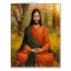 Here Jesus is sitting crossed legged in a beautiful woods at dawn. He meditates on God's truth.