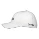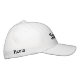 Fits well due to elastic edging, not adjustable.  Good qualty material. Good quality embroidering.  Subtle lettering (white on beige)  just as my wife likes.