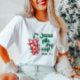 Faith-Based Jesus Fills My Cup T-Shirt - Psalm 23:5 Holiday Women's Tee. Share the joy of the season with this "Jesus Fills My Cup" T-shirt, featuring a festive cup with holiday lights and a reference to Psalm 23:5. Perfect for those who cherish faith and Christmas spirit.