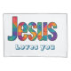 Beautiful colourful geometric design of the name of "Jesus" loves you (personalize message or scripture or name). Great gift for Christians who love the Lord and are proud to be His. This pillowcase fun to give for religious celebrations, events and parties such as baptisms and summer BBQ's.