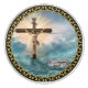 Jesus hanging from a christian crucifixion cross.Waiting to be resurrection on this body of water.True Religion.
