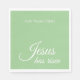 Personalized these Easter napkins with your own text. You can add your family name, your church name, or a short text. "Jesus has risen" written in elegant white script will add faith inspiration to your Easter table. These simple modern script paper napkins will look great on your Easter table. The light green solid colour is taken from the my photo of spring flowers. Add some cut flowers, some blossoms and some glassware for a chic, stylish botanical Easter table scape. All the contemporary typography is editable if you like to customize these Easter holiday napkins. Great for a faith filled family Easter, or church sunrise service, or Christian charity or mission dinner or banquet.