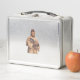 This is a standard metal lunchbox that appears to work just fine. We designed this box ourselves with an uploaded photo and custom text on the front and back. It looks absolutely beautiful except the front of the lunchbox is not centered like it shows in the photo. The print borders don't align with the inset flat part of the box where the preview photo online showed it perfectly centered in there. The back looks nice and centered though.