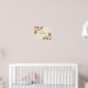 Pink roses on diagonal corners of the print of beige lace.