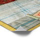 In this splendid image, Jesus sits at a table that is set for Passover and covered in a blue and white plaid cloth. He is clad in an eye-catching, soft red garment. It is Maundy or Holy Thursday and His Last Supper with His apostles. It is the moment at which He institutes the sacrament of Holy Communion or the Eucharist. + The figure of Jesus is isolated against a dark red background patterned with stylized artichokes in diamond shapes. The mood here is solemn. Lifting his eyes to heaven, Jesus raises his right hand in blessing. In his left, He holds up a large host, the Eucharistic bread, over the chalice filled with wine. In Latin--in a banderole beneath the scene--are the words of Consecration: “This is My Body… This is My Blood” (“Hoc est corpus meum… Hic est sanguis meus”). In remembrance of Him, at every Mass, the priest reenacts this sacred action turning ordinary bread and wine into Christ’s Body and Blood. + Image Credit (SAU 045): Antique devotional print of Jesus Instituting the Holy Eucharist, originally published in chromolithography by the Socièté de St. Augustin, Bruges, Belgium, late 19th century, from the designer’s private collection of religious ephemera.