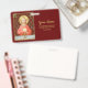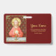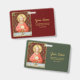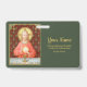 In this splendid image, Jesus sits at a table that is set for Passover and covered in a blue and white plaid cloth. He is clad in an eye-catching, soft red garment. It is Maundy or Holy Thursday and His Last Supper with His apostles. It is the moment at which He institutes the sacrament of Holy Communion or the Eucharist. + The figure of Jesus is isolated against a dark red background patterned with stylized artichokes in diamond shapes. The mood here is solemn. Lifting his eyes to heaven, Jesus raises his right hand in blessing. In his left, He holds up a large host, the Eucharistic bread, over the chalice filled with wine. In Latin--in a banderole beneath the scene--are the words of Consecration: “This is My Body… This is My Blood” (“Hoc est corpus meum… Hic est sanguis meus”). In remembrance of Him, at every Mass, the priest reenacts this sacred action turning ordinary bread and wine into Christ’s Body and Blood. + Image Credit (SAU 045): Antique devotional print of Jesus Instituting the Holy Eucharist, originally published in chromolithography by the Socièté de St. Augustin, Bruges, Belgium, late 19th century, from the designer’s private collection of religious ephemera.