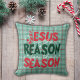 Introducing our festive Christmas throw pillow, adorned with the timeless saying Jesus Is The Reason For The Season on a cozy plaid background. Perfect for adding a touch of holiday cheer and elegance to your home decor, this pillow is a must-have addition for any Christian or religious household. With its modern typography and retro shades of red, green, and white, this pillow will effortlessly complement your Christmas theme. Whether you're decorating for a holiday party or simply sprucing up your living space, this pillow is sure to be a stylish statement piece. Get ready to celebrate the true meaning of Christmas with this delightful holiday accessory!