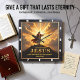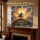This powerful and moving design captures the theme of Jesus as the Light of the World. The artwork, featured on a square wall clock, displays the figure of Christ standing triumphantly on a rocky mountain summit, overlooking the world below. He is dressed in flowing red and white robes and has his arms spread wide in a gesture of divine blessing. The scene is illuminated by an intense golden sunburst from behind, breaking through dramatic clouds. The title "LIGHT OF THE WORLD" and the bold name "JESUS" reinforce the image. The core message of Christian faith is quoted from John 8:12: "I am the light of the world." This incredible image provides a spectacular visual representation of faith, serving as an inspiring timepiece and striking centerpiece for any faithful home or sacred space.