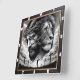 This powerful square wall clock artistically merges the images of Jesus wearing a crown of thorns and the majestic Lion of Judah. Below them, silhouettes of crosses stand against a cloudy sky, creating a profound symbol of faith, sacrifice, and redemption. This striking timepiece serves as a meaningful religious accent for any space.