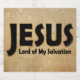 ►IMAGE: The name of “JESUS”. Simple, yet bold. ►COLORS: Black with brown border. ►TEXT: “JESUS, Lord of My Salvation”.. . . ►Design appeals to men & women, all ages, Believers in Jesus Christ and the Christian Religion. (DESIGN by Paula Bragg)