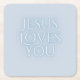 Jesus Loves Christian Typography Design Square Paper Coaster