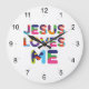 Jesus Loves Me Colourful Decorative Text Art Large Clock