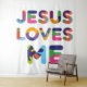 Jesus Loves Me colourful decorative text art. An elegant wall hanging or tapestry to decorate your place. Just buy one, enjoy, and Happy Easter!