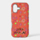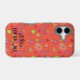 “Jesus Loves Me" Peach iPhone Case. Hand drawn art of pink hearts and white flowers on a peach background. Personalize text and background colour. Enjoy!