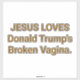 JESUS LOVES Donald Trump's Broken Vagina. Comic-Splash-Art Vinyl sticker-design by Jeff Hankamer at Artjunkhaus