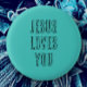 Jesus Loves You Customize Aqua & Black Modern 1 Inch Round Button