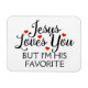 Jesus Loves You But I'm His Favourite. Christian Humour Saying. Funny Religious Slogan. With little red hearts.