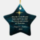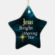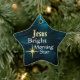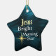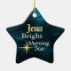 Star shaped Christmas ornament features Jesus Bright Morning Star on a beautiful blue abstract background. The back of the ornament can be customized with the details of your choice.
