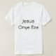 An amazing t-shirt, this shirt says "Jesus Onye Eze" which translates to "Jesus the King" in Igbo. In lovely black font, order yours today!