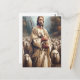 This heartfelt depiction of Jesus as the Good Shepherd radiates peace and compassion. Central to the scene, Jesus is shown in a three-quarter view, dressed in a flowing off-white robe. His light brown hair, tan complexion, and beard reflect His humble nature and warmth.