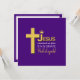Stylish purple JESUS RANSOMED ME Easter card, proclaiming the Christian message of Christ's victory at the Cross. The design shows a large yellow gold cross, and text that reads JESUS RANSOMED ME FROM SIN & GRAVE HALLELUJAH! There is a gold coloured crown above the J of Jesus. The text appears in white and yellow typography. All text - EXCEPT 'JESUS' - is CUSTOMIZABLE, so you have the option of just having JESUS, or you can change 'ransomed' to 'rescued' or 'saved'; or you can change 'sin & grave' to an addiction, or 'Hallelujah' to 'Praise Him'. The choice is yours! This would make an ideal card to give to family, friends and clients for Easter. Choose from a wide selection of Christian faith-based greeting cards and invitations for all occasions, designed by #bereandesigns. Matching gifts available.