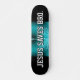 Modern, simple design. Jesus Saves Bro. cool blue lightning design background with light grey type. He shed his blood for us. #christianskateboards #jesusskateboards
