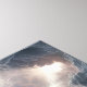 A Christ-like figure is carrying a young woman across a stormy sea, surrounded by swirling clouds and flashes of lightning