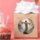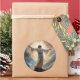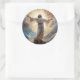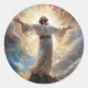 Round sticker is shown with an art print of Jesus in his glory.