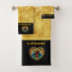 It was advertised as NAVY blue and the color sent was greenish blue. I am disappointed in this product. Quality and printing are great as are all my other orders. As you can see in picture the tea towel on right is perfect, hand towel not so much! Print was awesome and just as ordered
