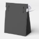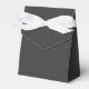 Dark, solid colour "Jet Black" Tent Favour Boxes with white ribbon. Jet Black is a very dark grey. Click on "Customize" to change colour or to add a pattern or design. Product Hex Code: #343434