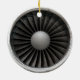 Front view of a modern jet turbine engine showing the fan blades and shiny silver engine cowling.