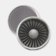 Front view of a modern jet turbine engine showing the fan blades and shiny silver engine cowling.