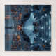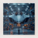 Vue cinématique d'un jet furtif futuriste tenu par des bras d'assemblage robotisés dans un hangar industriel brillant. Les tons d’acier bleu, les lumières ambrées et les détails croustillants créent une scène dramatique qui s’engage à construire et à mettre en valeur. Un cadeau parfait pour les passionnés d'aviation, les fans de mécha et les joueurs. Choisissez votre taille et nombre de pièces préférées sur Zazzle.