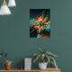 Experience the adrenaline rush of 'Firestorm Fury,' a dynamic artwork capturing a fighter jet slicing through a cloud of fire and smoke. With vibrant orange and green hues and striking paint decals, this piece combines camouflage with chaos.