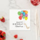 Ajoutez une touche d'amusement personnalisé à votre fête d'anniversaire avec des serviettes de cocktail en papier qui comprennent un tas de ballons translucides brillants et colorés, tenus dans une main de couleur claire et flanqués d'un texte facile à customiser "heureux anniversaire" pour vraiment célébrer cet ami spécial.