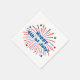 Joyeuses serviettes en papier 4 juillet pour la fête de l'Indépendance. Un service personnalisé avec un design de feux d'artifice. Illustration festive pour 4thofjuly bbq, mariage, anniversaire, baby shower etc. Couleurs patriotiques rouge blanc et bleu du drapeau américain. USA Stars et rayures imprimer pour la fête nationale.