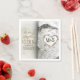 Serviettes en papier spéciales avec initiales en bois de mariée et de mariée, date mariage et lieu mariage. Beau vieux bouleau rustique et sculpté serviettes en papier coeur d'amour pour mariages rustiques pays.