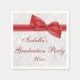 Elégante coutume damas blanc et faux arc fête de graduation servettes pour filles/femmes. Beau motif damassé blanc arrière - plan avec des images mignonnes, jolies, stylisées arcs et rubans rouges. Ce sont des serviettes glamour, classe, à la mode pour votre université, collège, lycée, les soirées de fin d'études supérieures. Belle, tendance, serviettes girly et chic pour les filles. Catégorie 2014, 2015, 2016, 2017, 2018, 2019, 2020, 2021, 2022, 2023, 2024, etc.