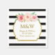 Serviettes de mariage Monogram avec motif classique rayures noir et blanc, fleurs vintages rose d'aquarelle et détails dorés glamour. Customisez ces serviettes avec vos noms, monogramme et date mariage.