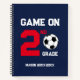 Ajoutez une touche spéciale à la journée de votre élève de l'école primaire avec ce charmant cahier personnalisé de soccer pour la rentrée scolaire. Le journal dit « Game On » (C'est parti) et comporte un ballon de football ainsi qu'un espace pour ajouter le niveau scolaire de votre jeune enfant. Vous pouvez également ajouter un prénom et une année scolaire, ou d'autres textes. Les couleurs du cahier sont le bleu, le rouge et le blanc. Fait un excellent cadeau personnalisé pour la rentrée scolaire pour un garçon ou une fille qui aime le sport !