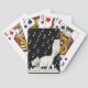 Ce jeu de cartes à jouer est recouvert de noir et de notes musicales blanches avec un chatte souriant doucement blanc marchant à travers les touches de piano en pleurant.