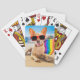 Cette jolie photo montre un chihuahua chien sur la plage portant un drapeau Gay pride couleur arc-en-ciel.