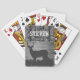 Ces cartes de jeu sont un design robuste pour le type qui aime être dans la chasse en brousse. Un buck en bois se tient dans l'herbe sur un arrière - plan rustique. Le nom peut être personnalisé.