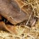 Ce très mignon cochon dort dans son lit de paille.