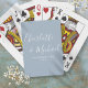 Avec des noms de style signature, ces cartes à jouer peuvent être personnalisées avec vos noms et date spéciale en lettrage chic sur un fond bleu poussiéreux. Conçu par Thisisnotme©