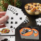 OK les gars, voici un jeu de cartes conçu sur mesure qui sera certainement un succès à votre prochaine partie de Poker. Le dos des cartes est orné d'une peinture numérique originale de l'artiste Leslie Sigal Javorek, où l'accent est mis sur une moto d'inspiration Art Déco et un coureur portant son casque ailé élégant. Sur le devant, les cartes faciales sont inhabituelles, car les images de pourcentage sont dans les tons monotones de gris à noir. Ce jeu de cartes fait sur mesure est un véritable début de conversation et fait un grand cadeau.