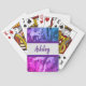 Ces cartes à jouer présentent un motif abstrait bleu et violet vif créé à partir d'une photo d'un morceau de bois flotté qui a reçu un filtre coloré. Les couleurs marbrées bleu et violet créent un arrière - plan unique pour une bannière violette et gris clair qui soutient votre nom. Personnalisez rapidement et facilement.