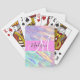 Nom monogramme irisé holographique rose, pêche et aqua, et cartes de jeu initiales. Votre nom personnalisé et votre monogramme sont écrits dans un élégant script écrit à la main avec un arrière - plan rose. Un cadeau d'anniversaire ou de Noël parfait !