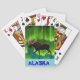 Une image toujours si légèrement stylisée d'une silhouette d'orignal contre les aurores boréales. Le mot "Alaska" apparaît en bas.
